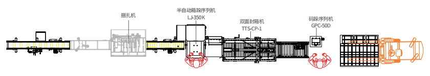 3、在半自动箱跺系列机上人工装箱,顶部配置相机层扫,斑马打印机打印箱码,人工将标签贴在箱子上, 再采用手持扫描枪扫箱码关联